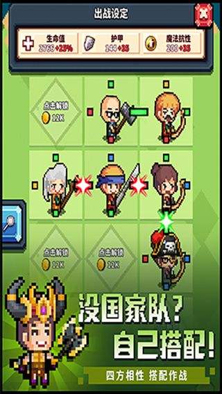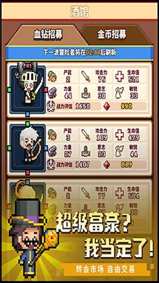 世界上没有两片相同的树叶,游戏里也没有一样的英雄!通过酒馆招募、自行培养、友情训练和交易等手段,你可以获得最顶级的英雄~