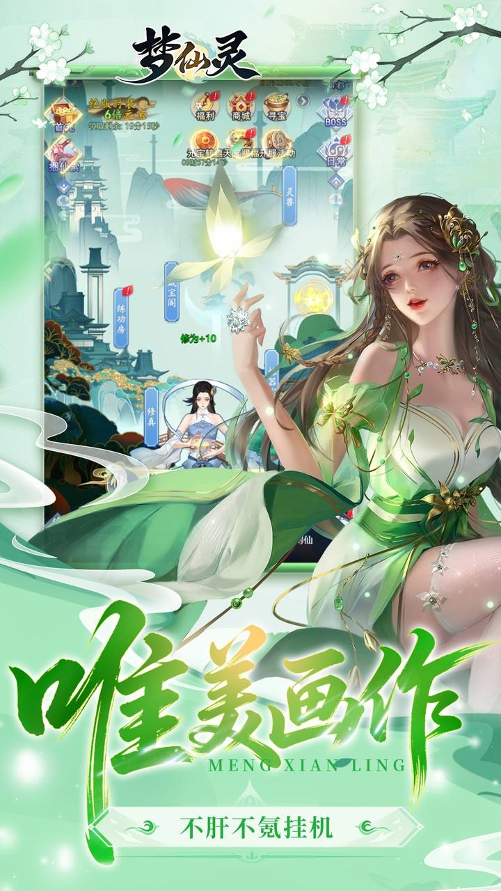 《梦仙灵》国风仙侠挂机手游重磅来袭,解放双手轻松修仙,离线挂机也能自动涨修为、爆神装,零操作畅玩修仙大世界!升级就送 10000 元红包,福利签到每日领 100 元充值卡,完成修真任务即赠大量充值卡,福利拿到手软!登录直送元宝8888、铜钱 888 万、神装碎片99,更有海量神装碎片登录即享,保送打造全套神装,开局战力拉满!零氪也能轻松成神,挂机躺赢渡劫飞升,快来《梦仙灵》开启你的专属修仙传奇!