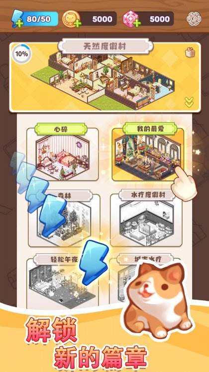 自由地解锁各种独具个性、风格独特的精美房间。
