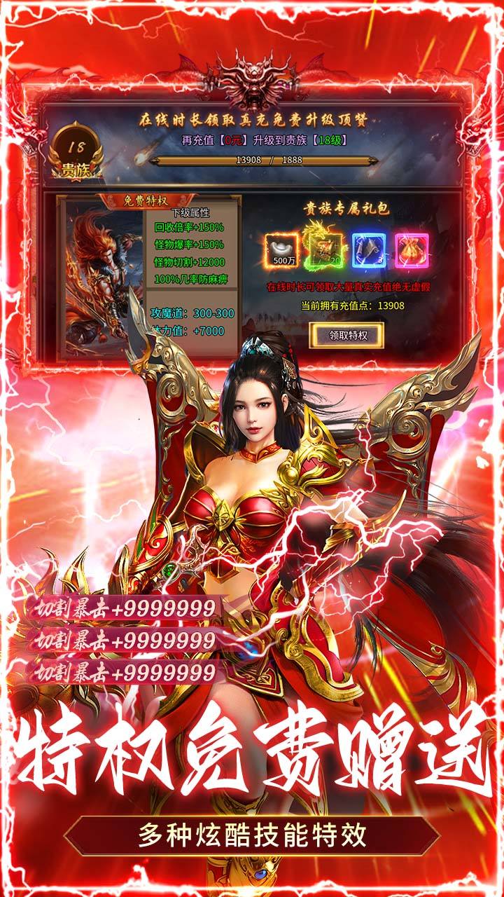 ★创角即送满级特权,满级切割,满级小神魔。