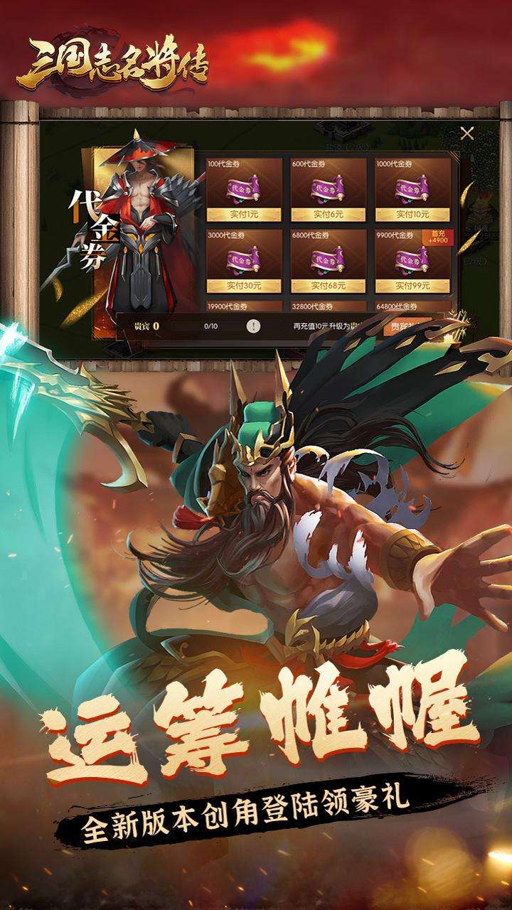 《三国志名将传》全新0.1折打金版本震撼上线!!这是款超燃三国策略大作,完美还原三国战场激战场面,地格为谋,兵阵为术,体验最真实的三国争霸。0.1折爽充开启!版本尊享君王特权,收益直接翻倍!每充值回馈充值积分,充值积分可兑换游戏珍贵道具,版本最强福利安排! 版本尊享君王特权,收益直接翻倍!在游戏中你将置身于真实三国沙场、集合三国各大名将,高还原场景,玩法丰富,百变阵型纵横战场,全新万人国战沙场已就绪,顶级道具任你攫取,这场霸权争夺等你加入!征战三国,就等主公了!