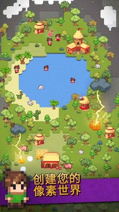 4 创造模式中可操控水、土、森林等元素塑造地形,生成人类、动物等生物,构建完整生态与文明