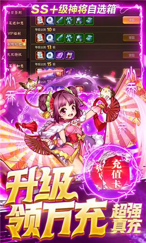 3、七日完成指定关卡目标可获得巅峰阵容(ss*2、ss+*2、sss*1),名震天下得一可得天下