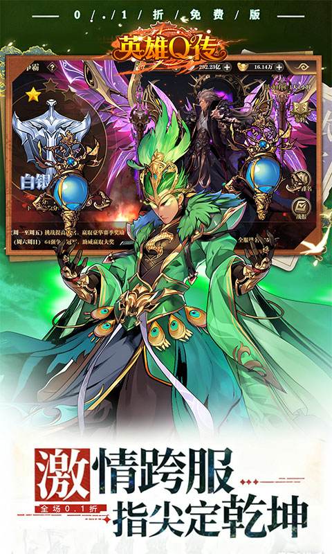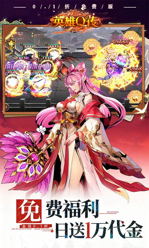 1、【全场0.1折】游戏内所有充值享永久0.1折福利; 2、【免费福利】游戏内每日登录免费领1万代金券; 3、【开局即送】黑金时装-观音*1、黑金神将令*30; 4、【登录送万抽】每天登录即可获得大量抽卡道具; 5、【签到壕礼】在线&签到领福利,超多道具免费领; 6、【革新玩法】跨服对战各显神通,称王争霸一触即发;