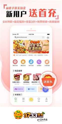 3733游戏app是一款超好玩的bt手机游戏盒子应用。3733游戏盒聚合全网好玩的BT手游、手游公益服、无限元宝服,专为玩家提供独家变态版游戏资源,以及最新最热门的手游资讯和攻略,让你从此游戏更轻松!