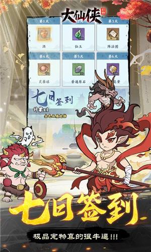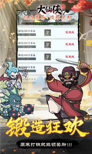 金锤,银锤,不如我的神锤!一锤一境界,让你体验快乐修仙!你正在找的魔性修仙游戏就在这里!《大仙侠》中你不再需要繁琐的流程杂提升等级,也不需要焦头烂额的获取装备。装备就放在你面前,经验、元宝、仙玉,一切的一切都在里面,来了就送!有游戏就有养成,游戏中精心制作了多套成长级玩法系统,同伴、法阵、神器、器灵、钓鱼、钓鱼、宝石、灵兽等等等等。这些系统将给您能带来独一无二的属性提升,也能同时让你充分体会修仙玩法所带来的乐趣!在游戏中的斗法系统与来自各地的对手一决高下,尝试新的属性将让你在修仙界战无不胜!不仅有斗法,更有仙友一路相随,组建属于你的团队,叫上三五好友,一起一锤一境界,探索修仙世界!